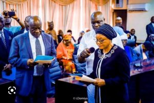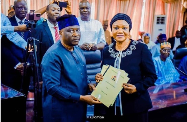 Governor Ahmadu Umaru Fintiri of Adamawa State, has today sworn-in the first female chief judge, Justice Hapsat Abdurrahman alongside Grand Khadi, Hon Justice Ibrahim Sudi and president of customary court of appeal, Hon Justice Audi Balami respectively.